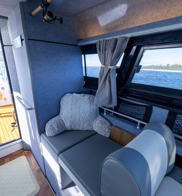Our layouts offer a fully air-conditioned cabin, a comfortable berth, a spacious toilet with shower, and a fully appointed galley.